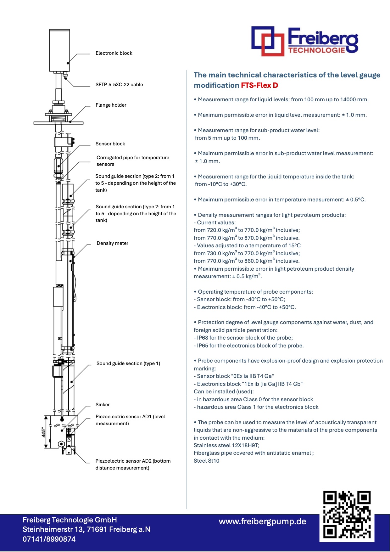 ✓ High-precision probe, with the possibility of using a non-contact method of measuring reservoirs.